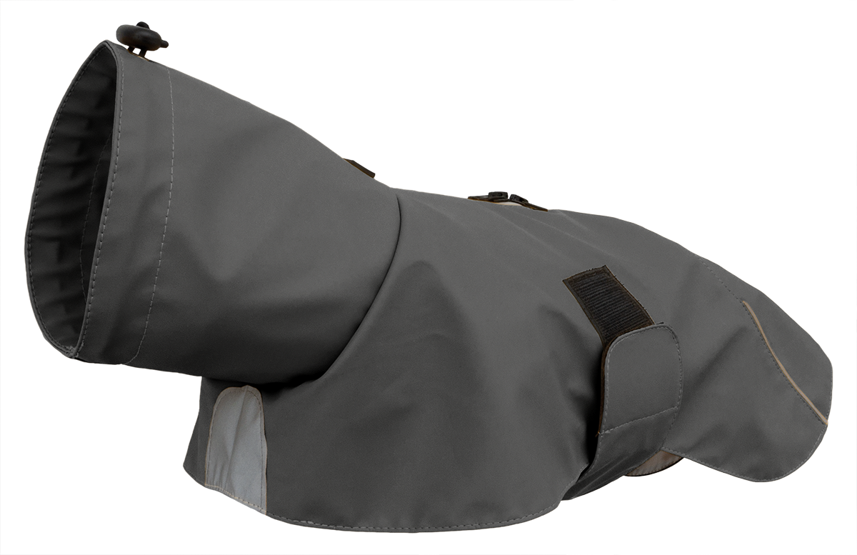 Der Regenmantel ist aus 100% wasserdichtem Material gefertigt und wird deinen Hund sowohl vor Regen als auch vor Wind schützen. Dein Vierbeiner bleibt auch bei rauem und dunklem Wetter gut sichtbar dank der reflektierenden Streifen. Mit dem Zugband am Hals kannst du den stehenden Kragen an den Halsumfang deines Hundes anpassen. Du befestigst den Mantel mit Klettverschluss. Auf dem Rücken befindet sich eine Schlitz mit doppeltem wasserdichtem Reißverschluss, durch den du die Leine stecken kannst, um sie am Halsband oder Geschirr zu befestigen.