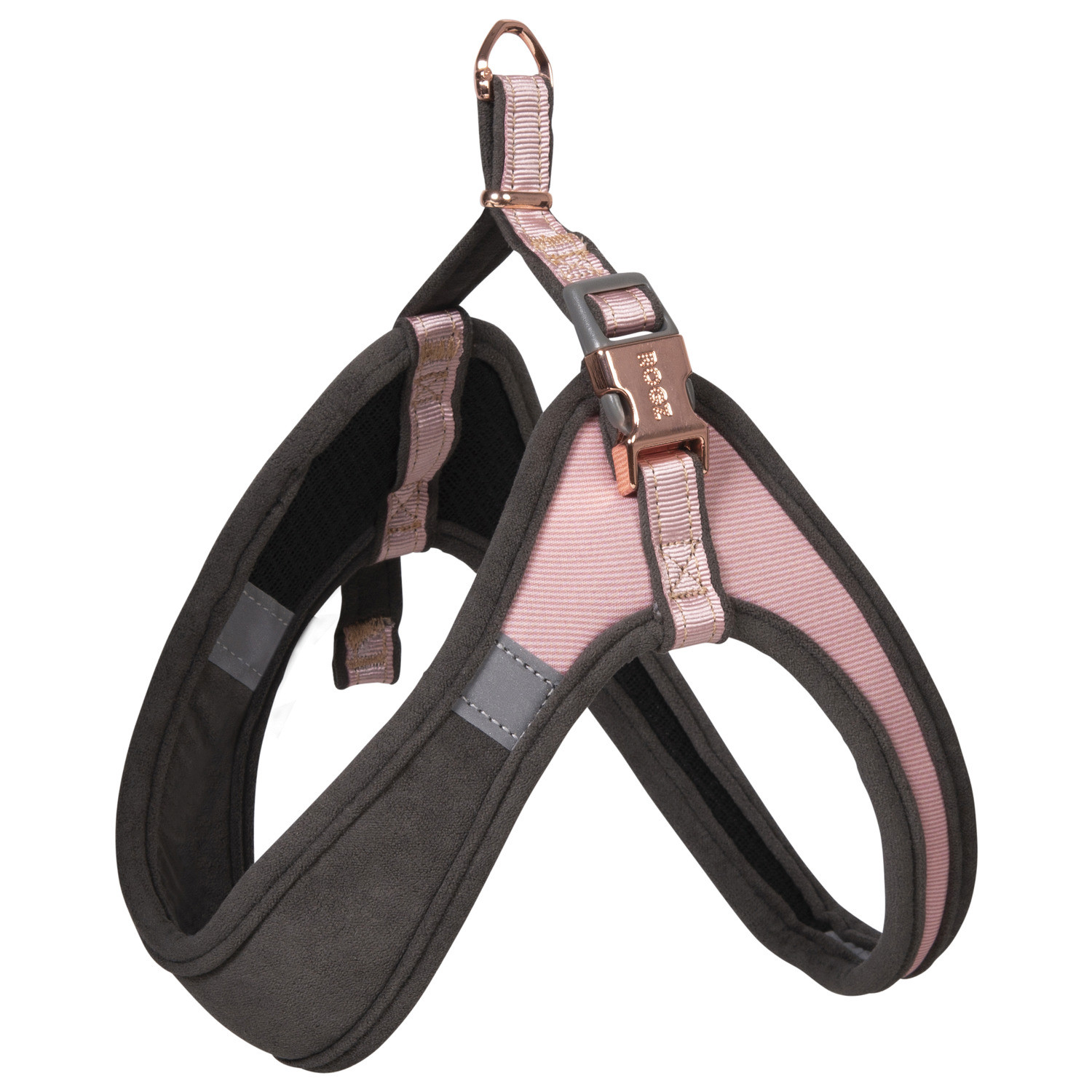 Das Geschirr hat eine sehr gute Passform dank unter anderem der weichen gepolsterten Polsterung, die für zusätzlichen Komfort und Unterstützung sorgt, so dass die Gelenke deines Hundes vollkommen frei beweglich sind. Die harten Teile haben eine runde Form, so dass sie sich dem Körper anpassen und das Geschirr eine optimale Passform hat. Das Geschirr hat weiche Pastelltöne mit roségoldenen Details, die nie aus der Mode kommen.