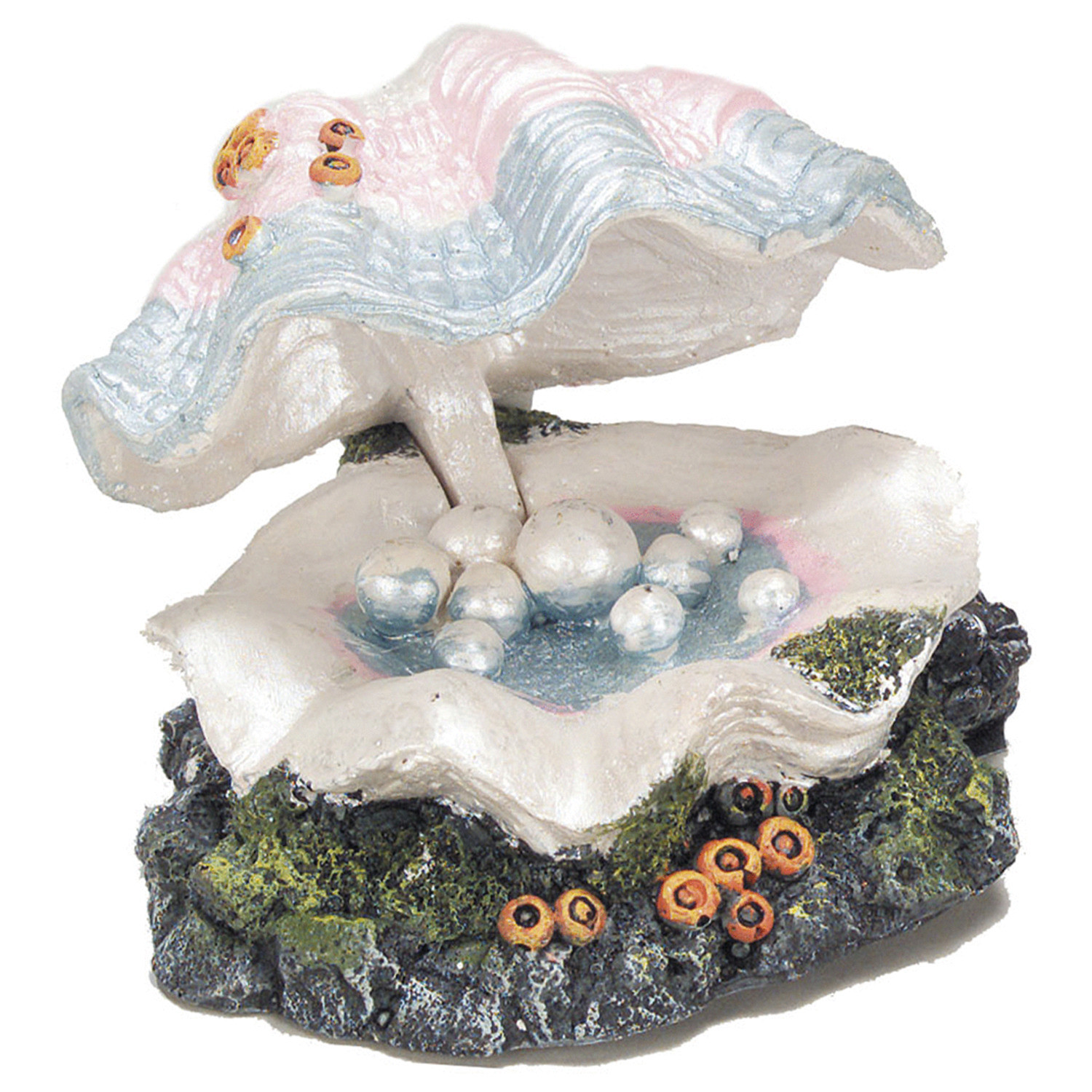 Natürliche Dekoration einer Muschel mit Perlen. Hergestellt aus Polyresin (Kunstharz). Durch den eingebauten Ausströmer entsteht ein Bewegungseffekt, der dafür sorgt, dass die Oberseite sich öffnet und schließt. Hierfür wird eine Luftpumpe benötigt (Luftpumpe nicht im Lieferumfang enthalten).