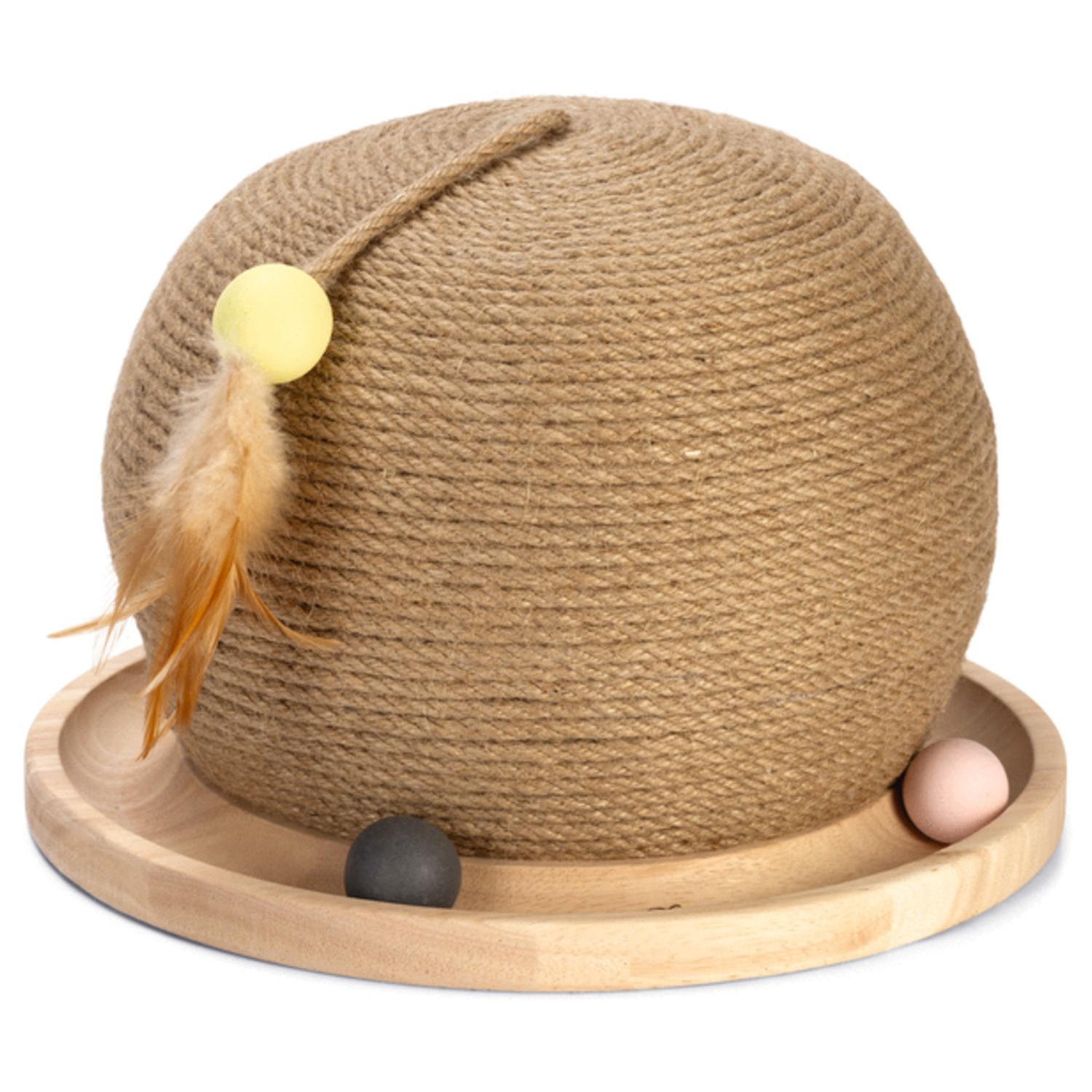 Was gibt es Schöneres, als gleichzeitig zu spielen und zu kratzen? Dies ist mit der Designed by Lotte Kratz- und Spielkugel Mila möglich. Diese Spielkugel enthält einen runden Fuß mit Schlitz. In diesem Schlitz liegen Bälle. Sobald Ihre Katze mit ihrer Nase oder ihren Pfoten gegen diese Bälle stößt, werden die Bälle in der Rille rollen. Ist Ihr haariger Freund schnell genug, um den Bällen zu folgen? Die Kratzkugel oben auf dem Spielbereich ist mit Jute umwickelt. Hier kann Ihre Katze ihre Krallen wunderbar schärfen und pflegen. Das hinzugefügte Federchen oben auf der Spielkugel macht das Spielen extra spaßig! Designed by Lotte Katzenspielzeug Mila ist aus Gummibaumholz gefertigt. - Aus Gummibaumholz gefertigt - Zum Spielen und Krallen schärfen - Inklusive Spielbällen - Inklusive Federchen - Mit Jute umwickelt Maße: 29,5x29,5x22 cm