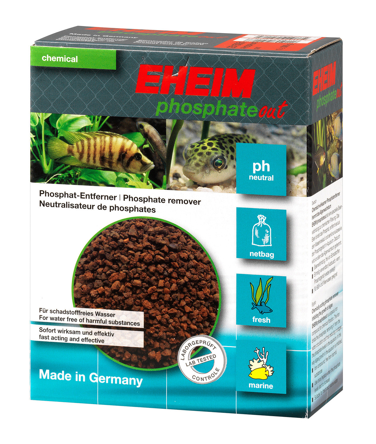 Phosphateout von Eheim bindet die überschüssigen Phosphate und entfernt sie aus dem Wasser, wodurch das Algenwachstum gehemmt wird. Wenn Sie feststellen, dass wieder Algen im Aquarium wachsen, ist es ratsam, dieses Filtermedium zu ersetzen. Das Medium enthält keine schädlichen Stoffe und ist für Süß- und Salzwasser geeignet.
