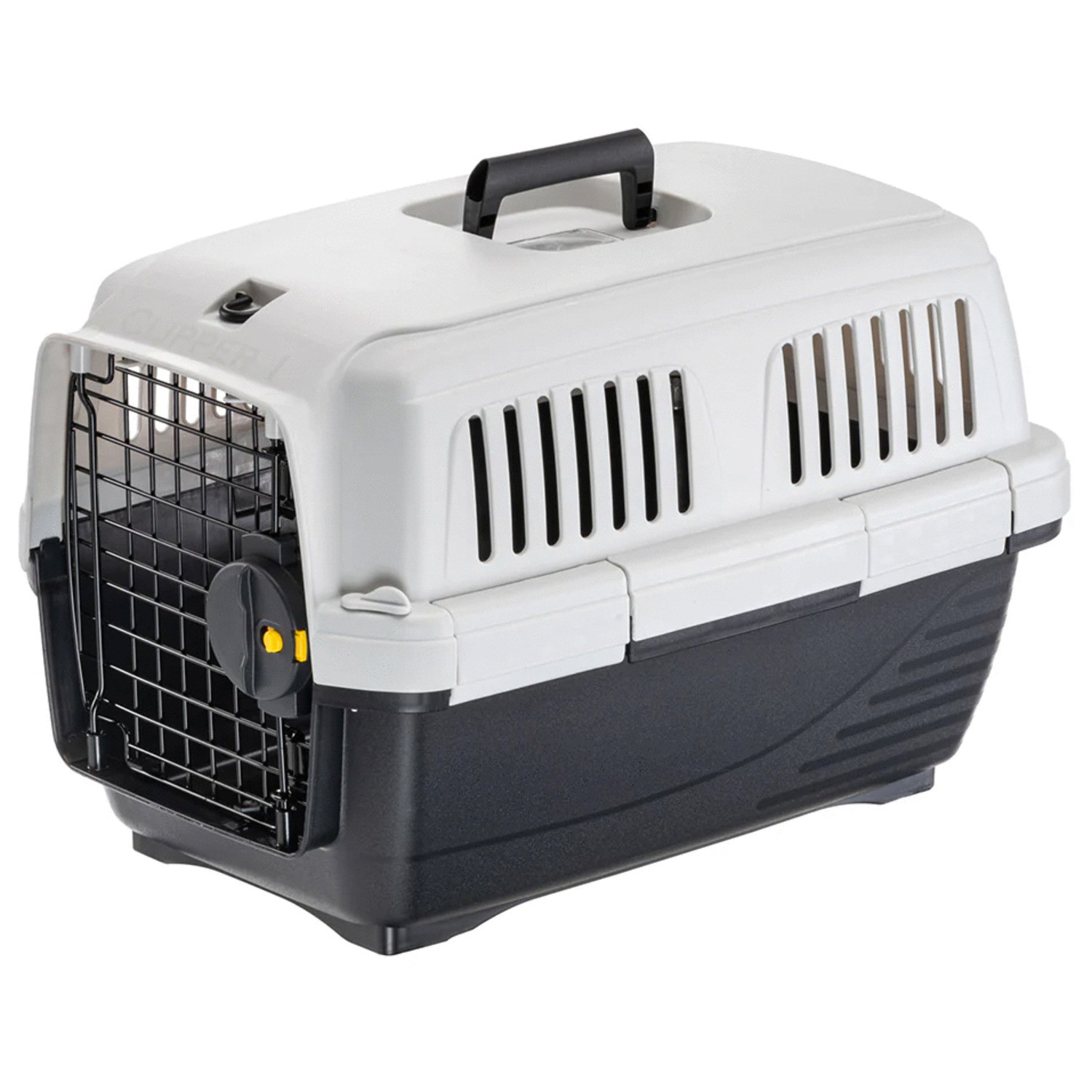 Robust und widerstandsfähig, sie bestehen aus thermoplastischem Harz und sind mit einer kunststoffbeschichteten Stahltür mit einer Maschenweite von 19 x 19 mm für mehr Sicherheit ausgestattet. Die Träger sind mit einem äußerst zuverlässigen Zweifachverriegelungssystem ausgestattet, das unbeabsichtigtes Öffnen während des Reisens verhindert. Durch Drehen des Knopfes werden tatsächlich zwei Befestigungspunkte aktiviert, die die Tür am Hauptrahmen der Hundetrage verankern.