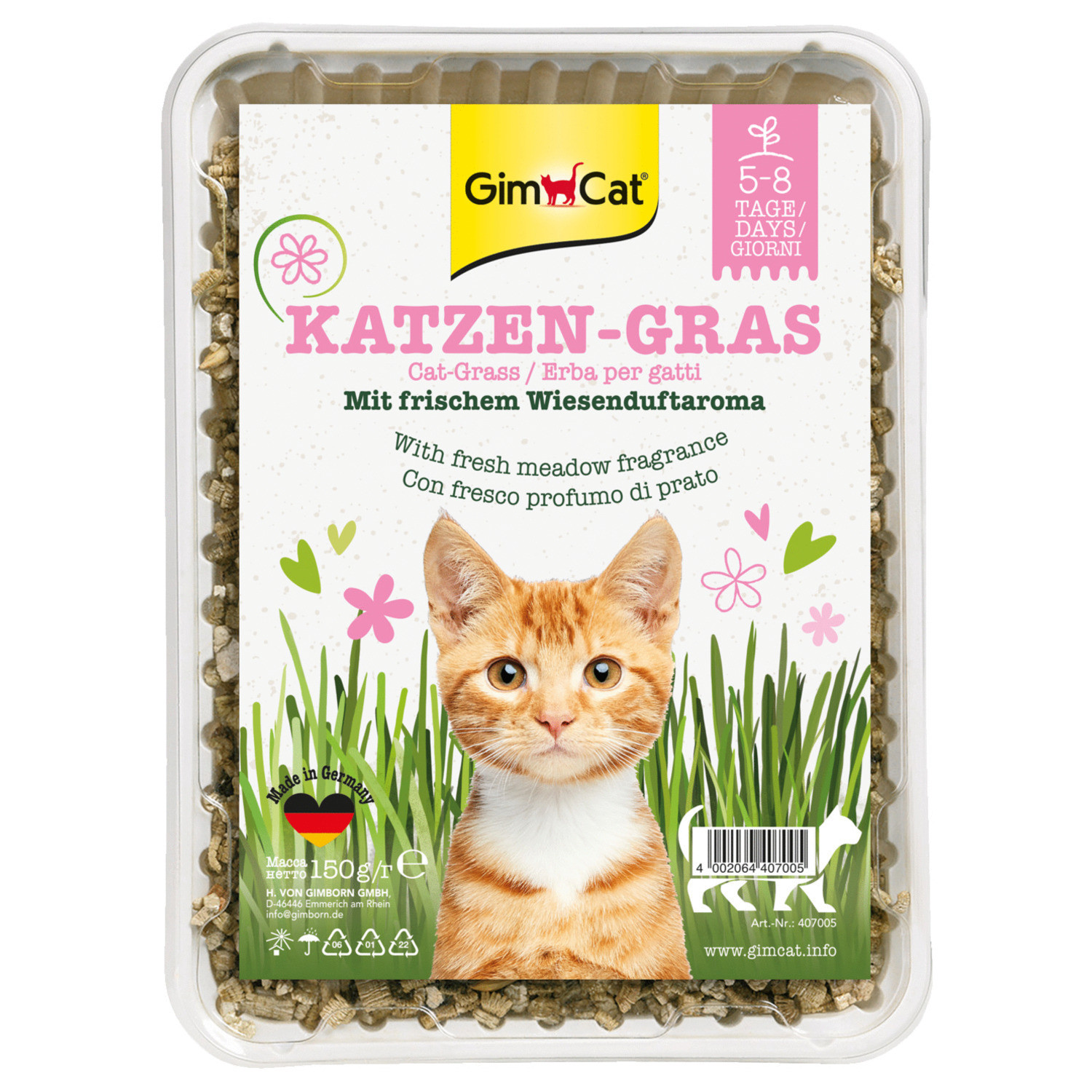 Auch wenn Katzen hauptsächlich Fleisch fressen, kann auch Gras gut für die Verdauung Ihres Haustieres sein. Mit Katzen-Gras von GimCat können Sie ganz einfach Ihr eigenes Katzen-Gras züchten. Das Gras ist reich an Vitaminen, versorgt Ihre Katze mit zusätzlichem Folsäure und hilft beim Herauswürgen von Haarballen. Das Gras ist auch eine ideale Ablenkung für Katzen, die gerne an Zimmerpflanzen knabbern. Die Katzen-Gras Variante hat einen frischen Wiesenduft.